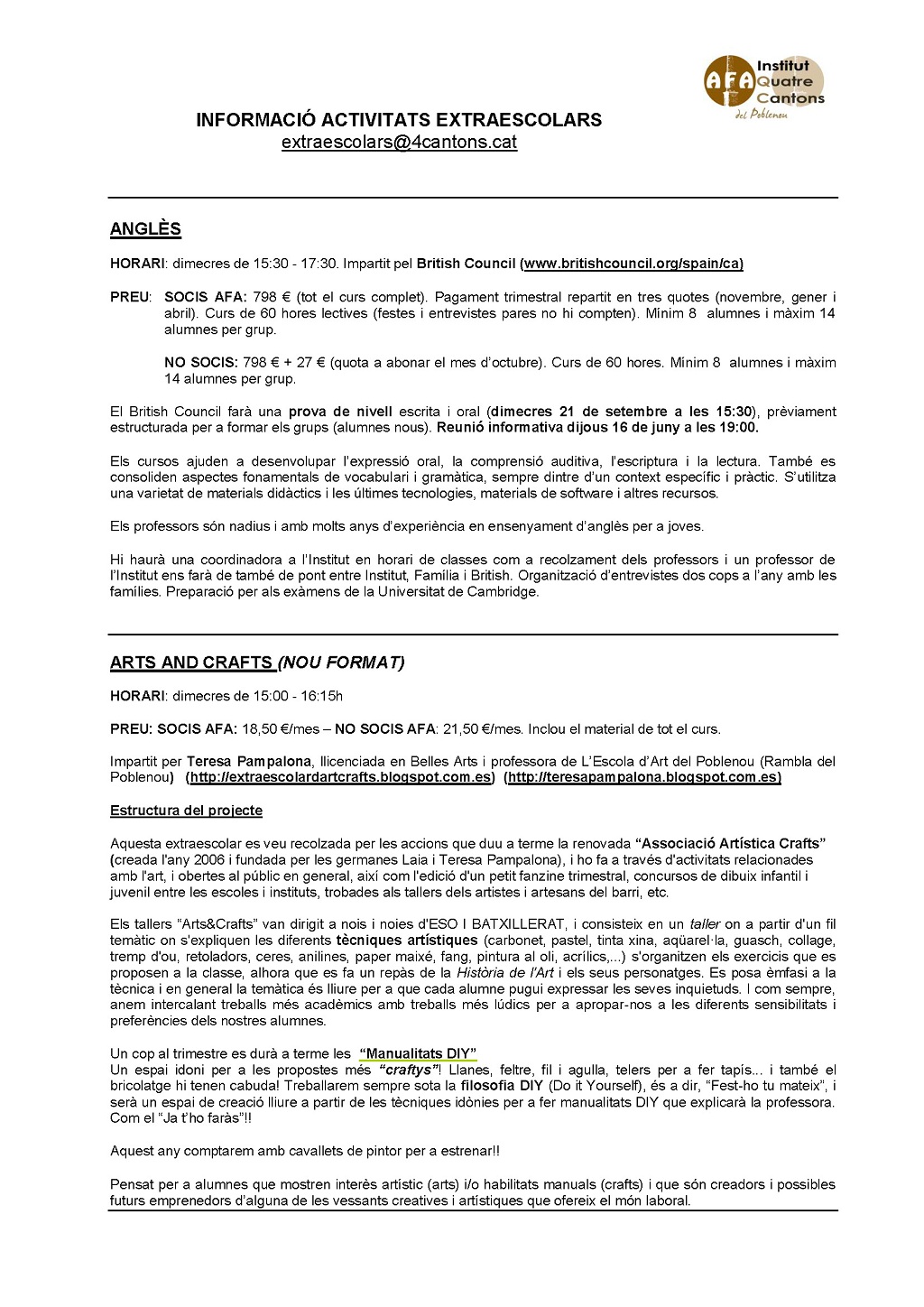 Inscripcions i funcionament de les extraescolars